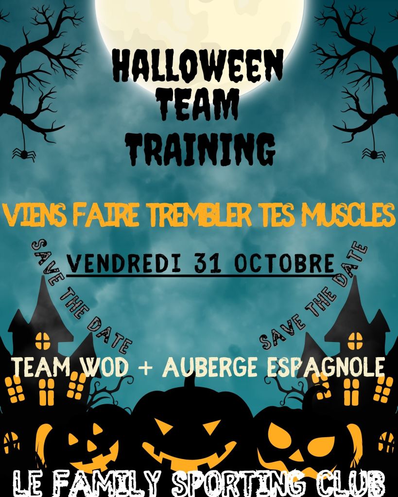 Toute la team du Family Sporting Club t’invite à venir te surpasser pour le Halloween training ! L’objectif ? Finir en sueur ! Pas dans un cercueil ! ☠️